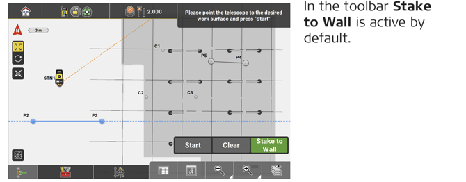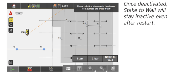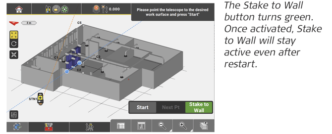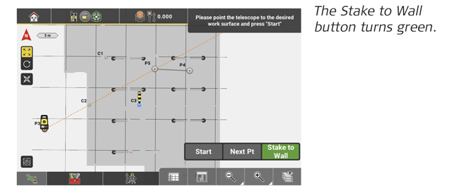 • In the Measure bar tap the Stake to Wall button to activate the function.