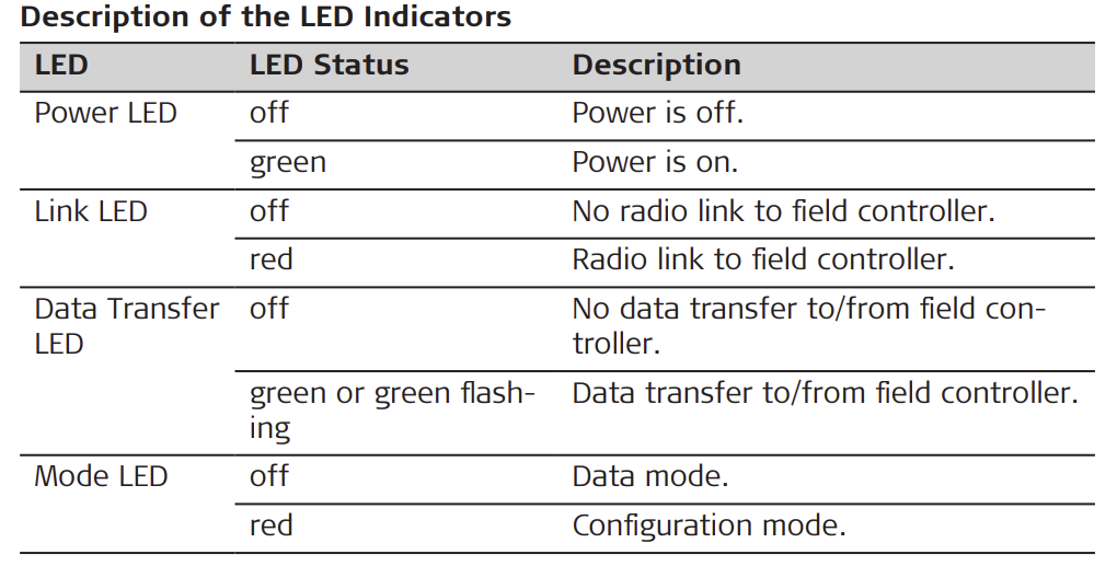 Description: The RadioHandle has Light Emitting Diode (LED) indicators. They indicate the