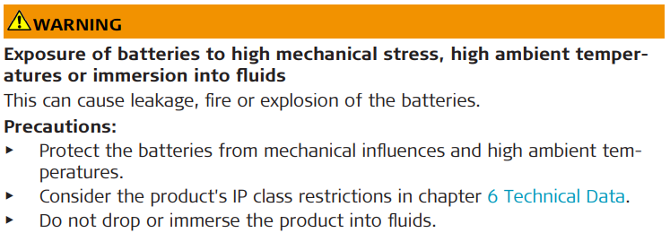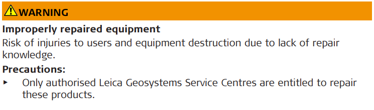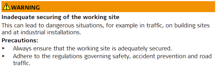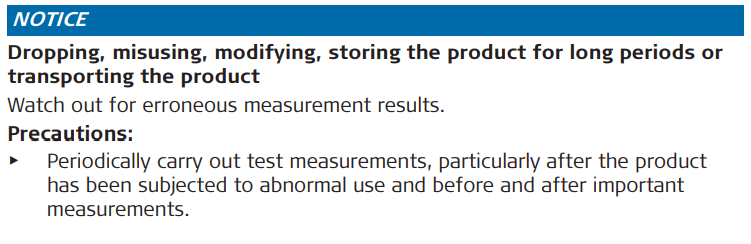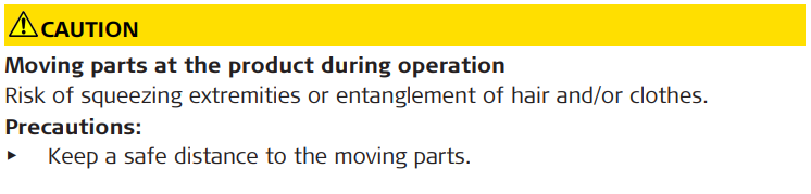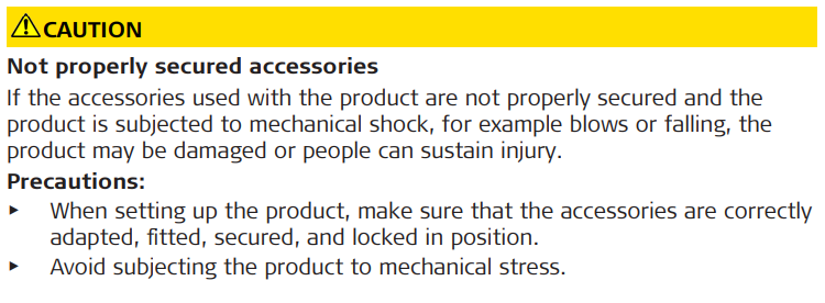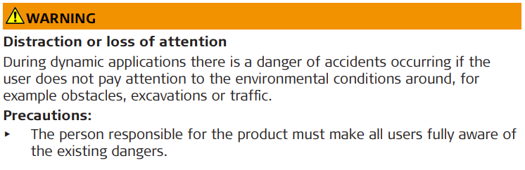 Hazards of Use 1.5 ☞ If the instrument moves unexpectedly during operation, stop the instrument via user interface (display, key) or alternatively remove the battery or main power source to prevent further movements.