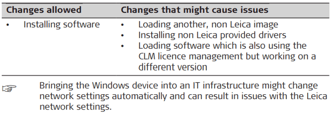 Any support by Leica Geosystems after such changes is limited and lies rather in the responsibility of the user or the user’s IT department.