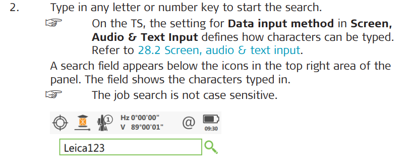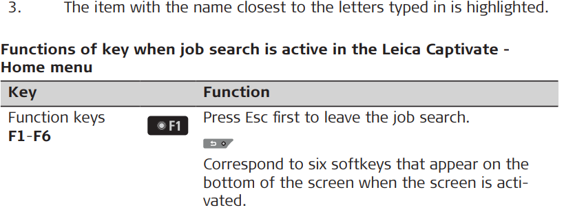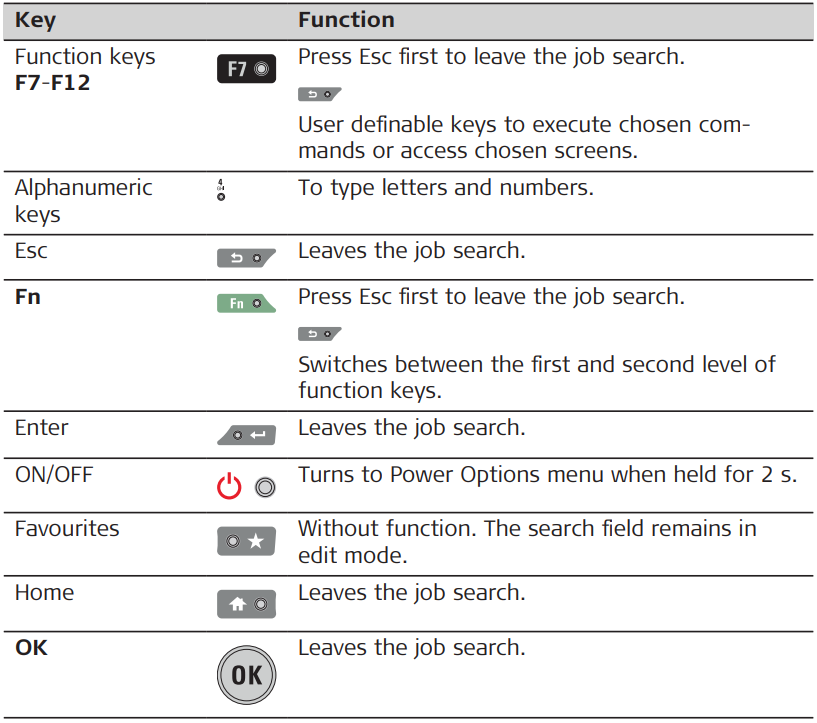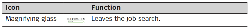 Functions of icons when job search is active in the Leica Captivate - Home menu
