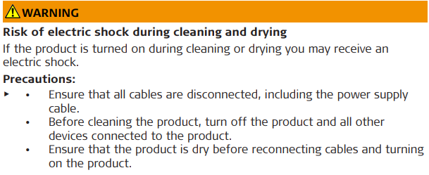 ☞ Wait until the equipment is totally dry before reconnecting cables.