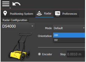 2. Select the antenna orientation (HH or VV), from the Orientation drop-down menu.
