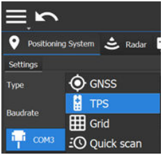 5. From the drop-down menu of the Positioning System tab, select the TPS mode.