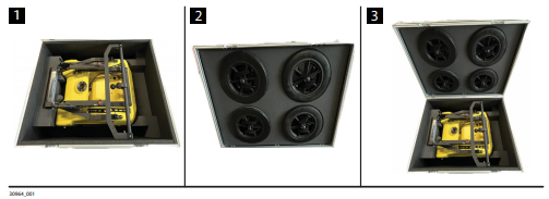 2. Place the A310 wheels in the foam of the cover and secure them using the velcro.