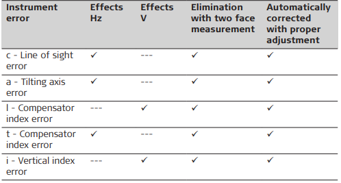 During the manufacturing process, the instrument errors are carefully determined and set to zero. As mentioned above, these errors can change and it is highly recommended to redetermine them in the following situations:
