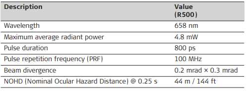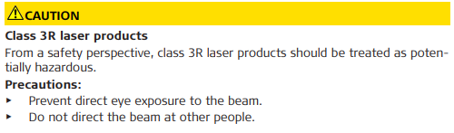 Direct intrabeam viewing may be hazardous (low eye hazard level), in particular for deliberate ocular exposure. The beam may cause dazzle, flash-blindness and after-images, particularly under low ambient light conditions. The risk of injury for laser class 3R products is limited because of: