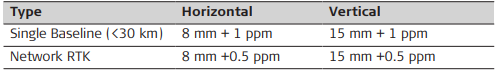 The following accuracies, given as root mean square, are based on measurements processed using Leica Infinity and on real-time measurements.