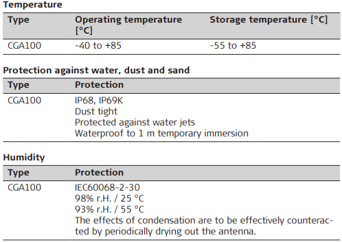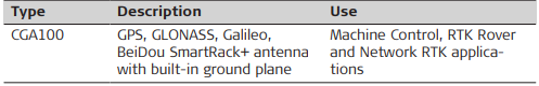 Description and use with iCA202: The GNSS antenna is selected for use based upon the application. The table gives a description and the intended use of the antenna.