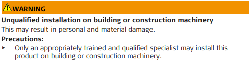 • This product must be installed on building and construction machinery only by an appropriately trained and qualified specialist.