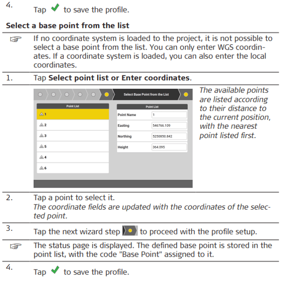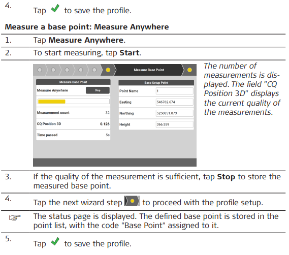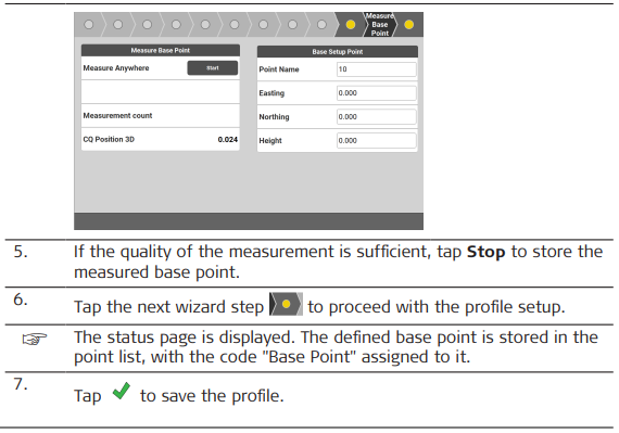 base point should be within a distance of maximum 20 m. Base Setup can be done during Profile Setup