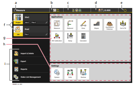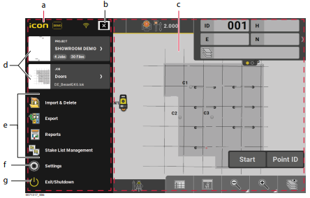 Exits the software or shuts the controller and sensor down. - Project and Jobs management