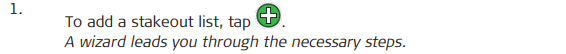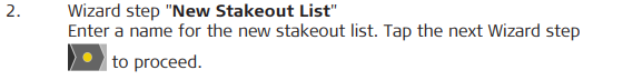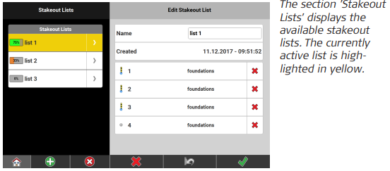 To display the content of a stakeout list or to edit its name, tap the arrow button.