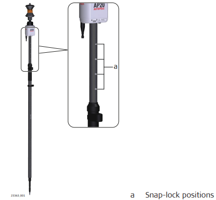 As soon as a snap-lock position is reached, the attached AP20 receives the detected height from the AP Reflector Pole and transmits it to the field software of the connected total station or field controller.