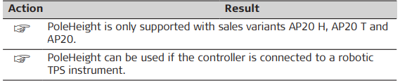 The transmitted height corresponds to the current length between prism centre and pole tip, which is equivalent to the printed scale on the pole and the height input field within the field software.