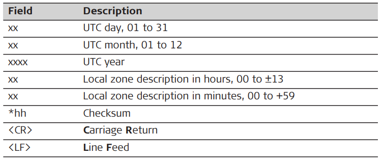 Syntax: $--ZDA,hhmmss.ss,xx,xx,xxxx,xx,xx*hh<CR><LF>