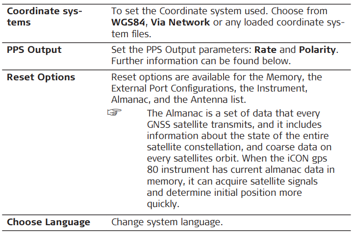 • PPS stands for Pulse Per Second. If configured, iCON gps 80 sends out an electric pulse at a specified interval time. For example, this could be used to activate another device.
