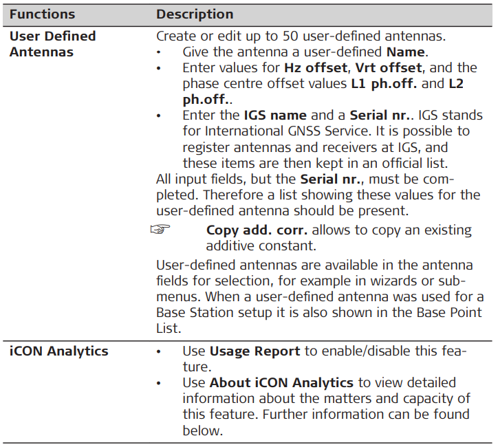 Leica Geosystems would like your help to improve this product. Your iCON device can automatically collect diagnostic and usage info from your device and send it to Leica Geosystems for analysis - but only with your permission. Diagnostic and usage information may include details about hardware and operating system specifications, performance statistics, and data about how you use your devices and applications. The collected information may also contain the location and serial number of the hardware. This collected information is stored on a cloud based server and will be used for troubleshooting