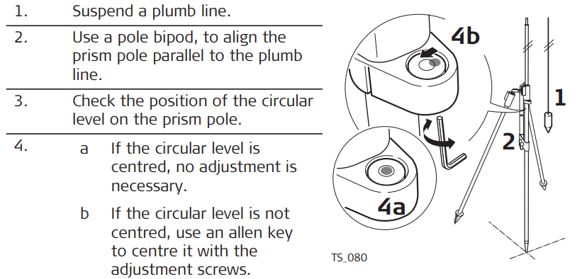 Adjusting the Circular Level of the Prism Pole 5.5 Adjusting the circular level step-by-step ☞ After the adjustments, all adjusting screws must have the same tightening tension and no adjusting screw should be loose.