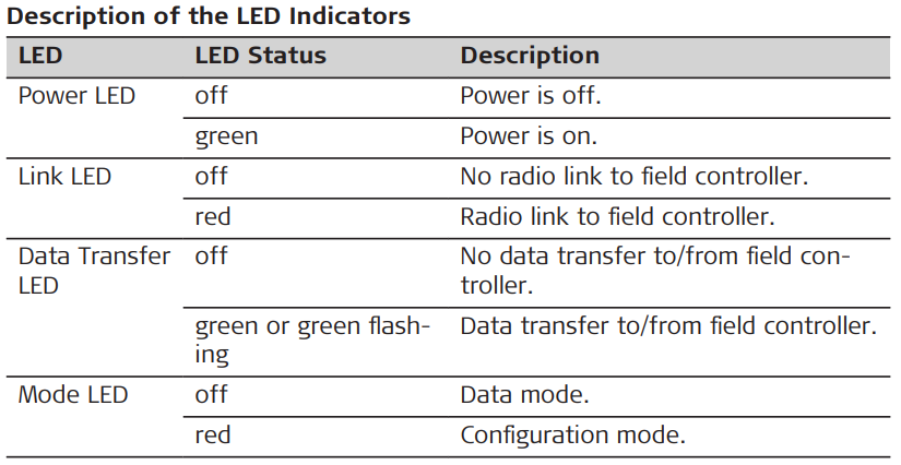 CommunicationHandle 3.2 LED indicators on CommunicationHandle Description: The CommunicationHandle has Light Emitting Diode (LED) indicators. Theyindicate the basic CommunicationHandle status.