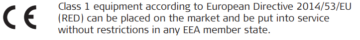 • The conformity for countries with other national regulations not covered by the FCC part 15 or European Directive 2014/53/EU has to be approved prior to use and operation.