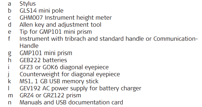 Container contents for instrument and accessories