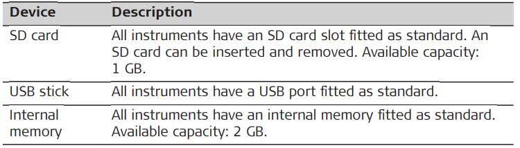 ☞ While other SD cards/USB sticks can be used, Leica Geosystems recommends to only use Leica SD cards/USB sticks and is not responsible for data loss or any other error that can occur while using a non-Leica SD card/USB stick.