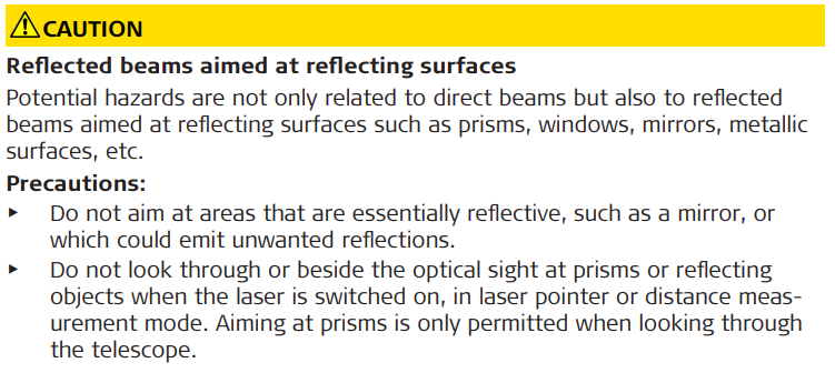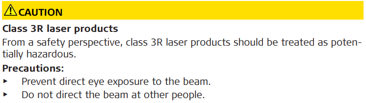 Direct intrabeam viewing may be hazardous (low eye hazard level), in particular for deliberate ocular exposure. The beam may cause dazzle, flash-blindness and after-images, particularly under low ambient light conditions. The risk of injury for laser class 3R products is limited because of:
