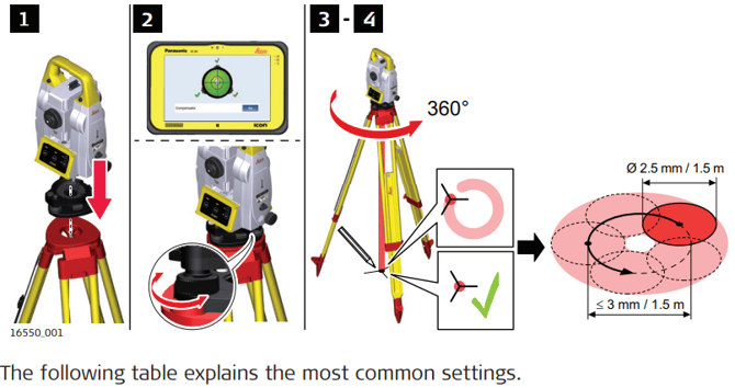 - Place and secure the instrument into the tribrach and onto a tripod.