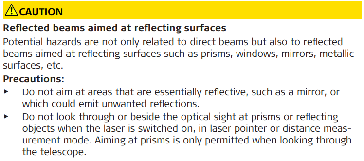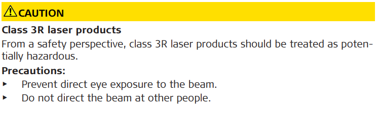 Direct intrabeam viewing may be hazardous (low eye hazard level), in particular for deliberate ocular exposure. The beam may cause dazzle, flash-blindness and after-images, particularly under low ambient light conditions. The risk of injury for laser class 3R products is limited because of:
