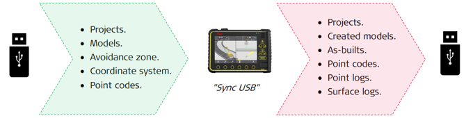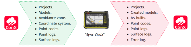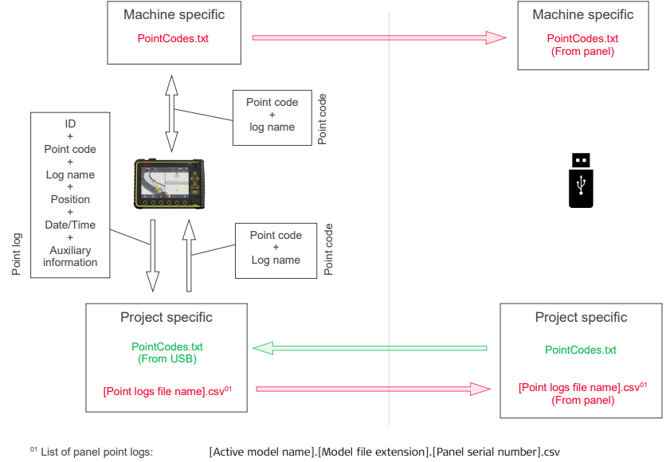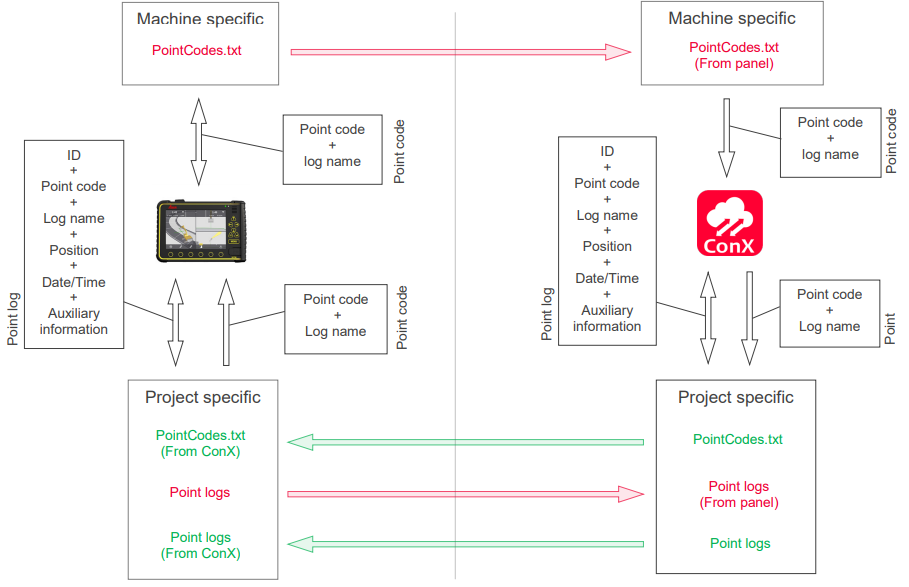 Use cases: USB – MC1 – USB Point code / point log synchronization ConX – MC1 – ConX Point code / point log synchronization