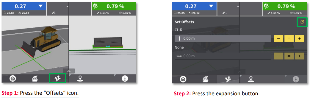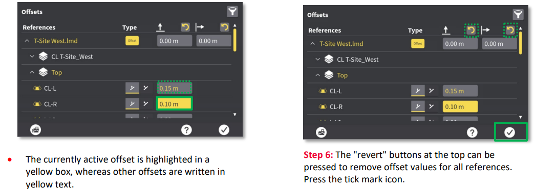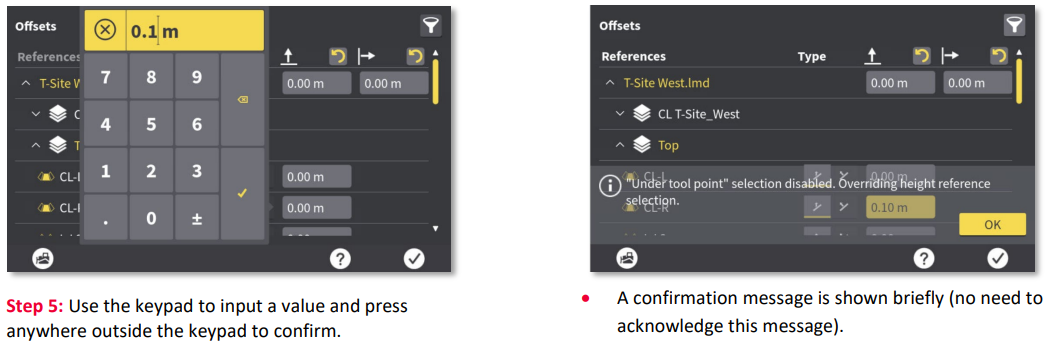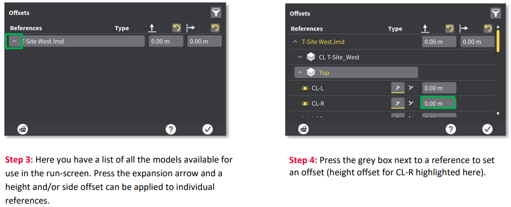 In the expanded “Offsets” menu, you can offset individual references within a model. Only references and models eligible for height/side reference have the option to edit an offset value. Offsets are used in relation to the machine's tool point. Described workflow reflects Individual height offset, but the same workflow applies for individual side reference.