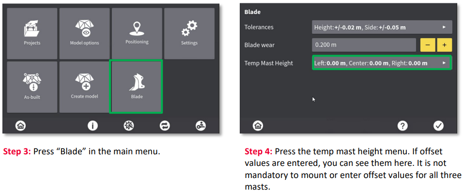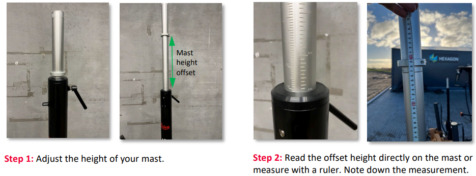 When mounting a prism on the mast you can increase the mast height above the cabin, so the cabin does not block the line of sight when using TPS. When using a single mast setup, it is preferably to use the centre mast if available. This workflow describes how to adjust the mast height and where to enter the offset values in MC1.