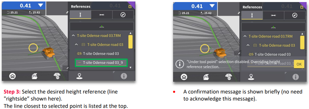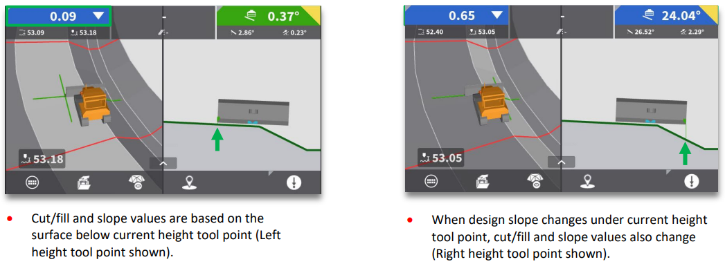 From the run screen, you can select and use different parts of your model as "height reference". The "height tool point" defines where MC1 looks at the model for elevation guidance. Understanding how this works is useful in different grading applications where you might need to overhang one part of your design to cut another. See Workflow 09 for how to select and use a "side reference".
