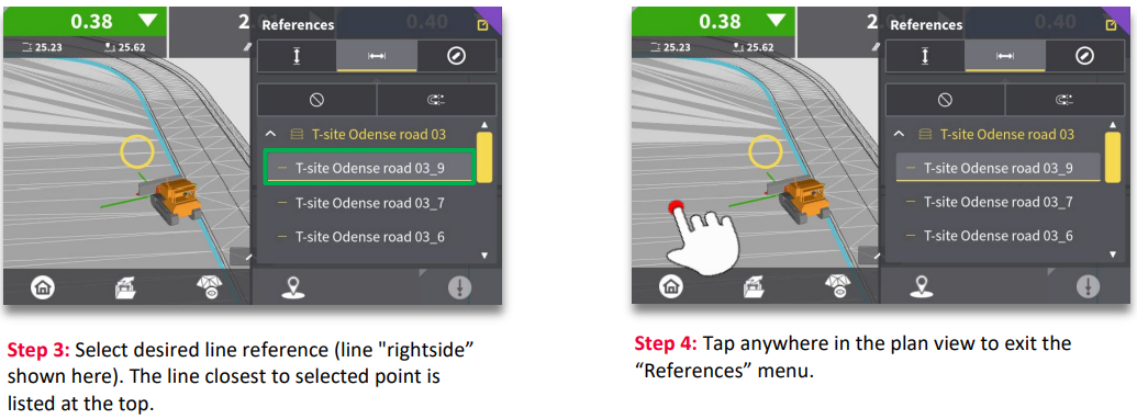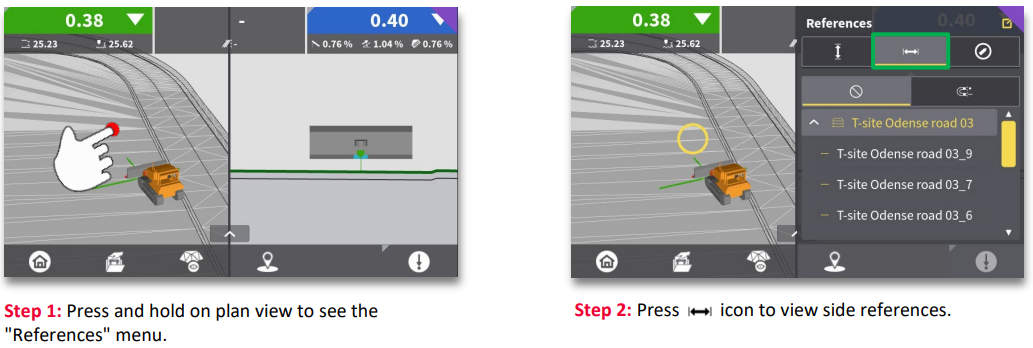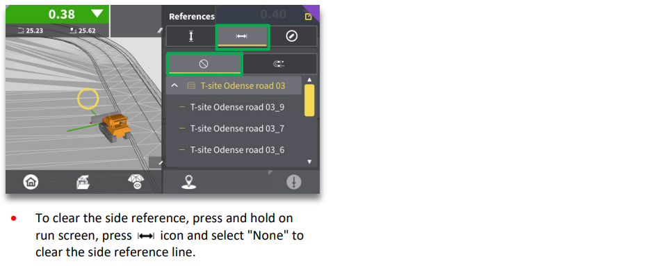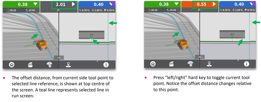 From the run screen, you can select and use different parts of your model as side reference. The side tool point defines where MC1 looks at the model for horizontal guidance. Select a point or line, and you will see a navigation bar at the top of the run screen. This navigation bar will guide you to the selected reference, based on your selected side tool point. See Workflow 08 for