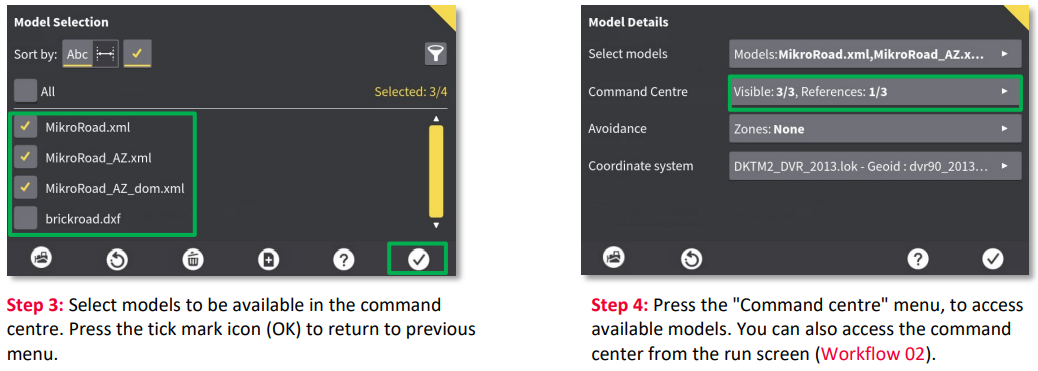 Multiple models can be loaded for a project, and several references can be made available for selection in the command centre. The command centre can be accessed from the run screen, or in "Projects" menu. If you already have all necessary files loaded for your project, skip ahead to "Step 4".