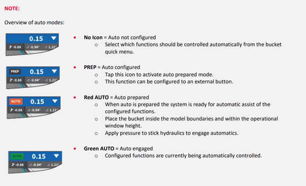 The following workflows focus on the auto modes (CoPilot and semi-automatic machine control):