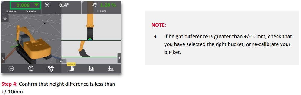 Bucket verification is a critical step. When verifying your bucket calibration, you bench the machine on a point, change geometry of bucket/stick angle, and then re-check the point (Open/closed bucket).