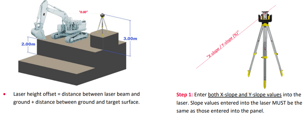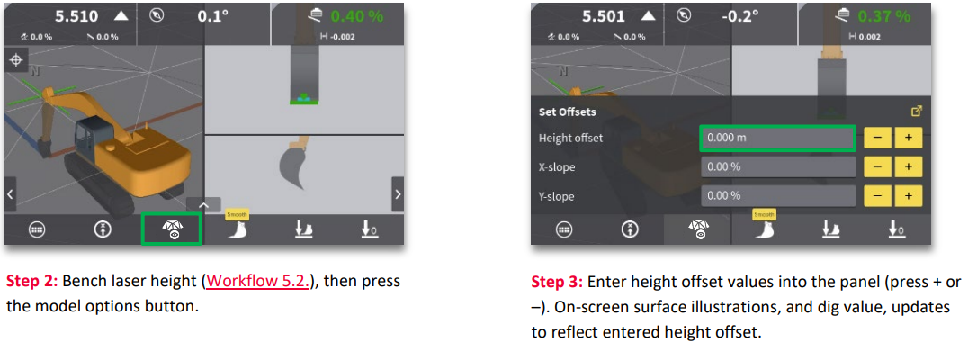 Workflow 5.3. Offset benched laser height (2D) When benching with a laser an additional height offset will be necessary to provide guidance to dig depth.