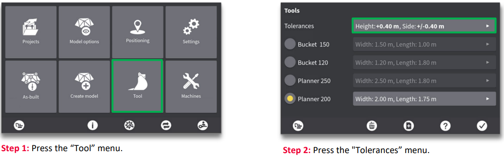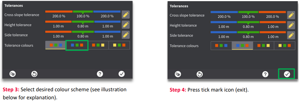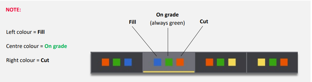 Workflow 6.1. Change tolerance colours (2D/3D) You can adjust the colours shown in the cut/fill window. There are 4 colour schemes to choose from. Note: on grade will always be represented by the colour green.