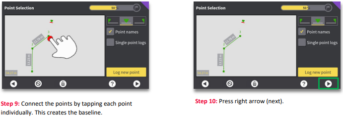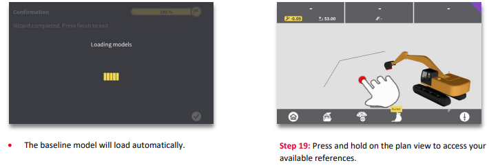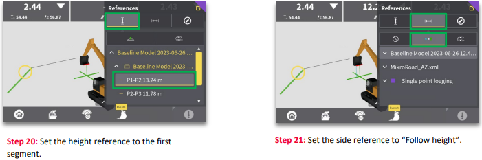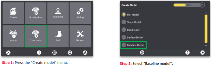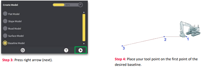 You can create a baseline model using your machine with MC1 by using existing logged points or logging new ones. Baseline models are used for drainage, sewage, trench for curbs and anything you would use a stringline for. There is no limit to the number of elements used to create the baseline model. In this example we will create a new model by logging new points on the go.
