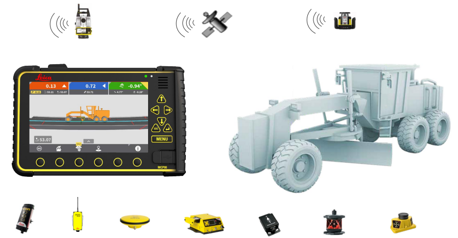 All workflows evolve around MC1 (Software platform) for grader, and they cover both 2D and 3D machine control solutions.