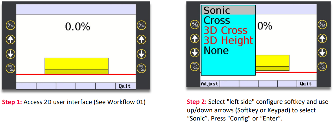 Workflow 04: Operate your machine with "Sonic tracer" Sonic tracers are useful in grading when you need to match an existing surface, curb or have a string line for elevation control.