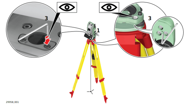 Tribrach: If it extends beyond the circle, use the supplied allen key to centre it with the adjustment screws.