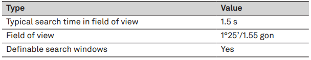 Shortest measuring distance, 360° prism (Target aiming): 1.5 m