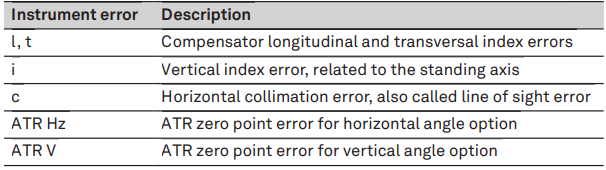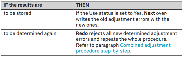 Description: The combined adjustment procedure determines the following instrument errors in one process