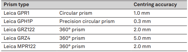 ☞ Refer to the white paper "Leica Surveying Reflectors" for information about the different centring accuracies.