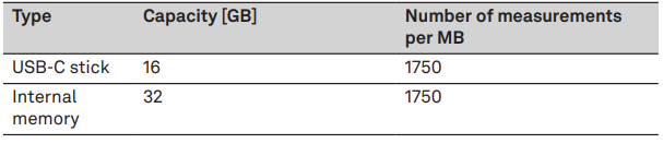 Recording: Data can be recorded onto an USB-C stick or into internal memory.