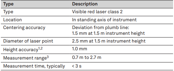 Example: "Single measurements: 1 mm + 1 ppm (1 mm + 1x10-6D)"