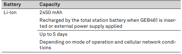 • Data services, if an eSIM profile of a Mobile Network Operator gets installed. Refer to 4.5 Configuring eSIM of GMI01. Data Services can be used by purchasing a HxGN GeoCloud Drive subscription. The TS20 mobile internet can be used for any other data service requiring internet connectivity.